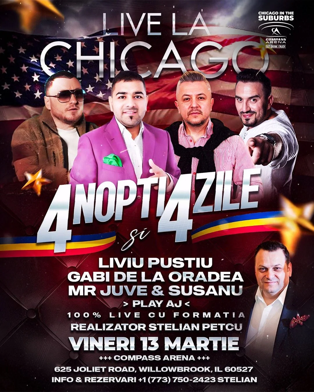 The lineup features Liviu Pustiu, Gabi de la Oradea, Mr Juve, and Susanu, all performing live as part of a professionally produced show led by Stelian Petcu. Each performance is designed to offer exceptional sound, dynamic energy, and a premium live event experience.